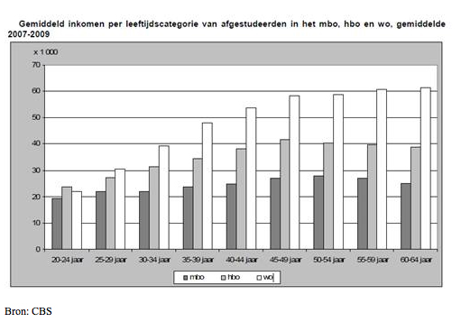 Studeren loont inderdaad, blijkt uit het CBS-rapport ‘Inkomens van afgestudeerden 2007-2009’. Academici verdienen gemiddeld twee keer zoveel als mbo’ers en anderhalf keer zoveel als hbo’ers.