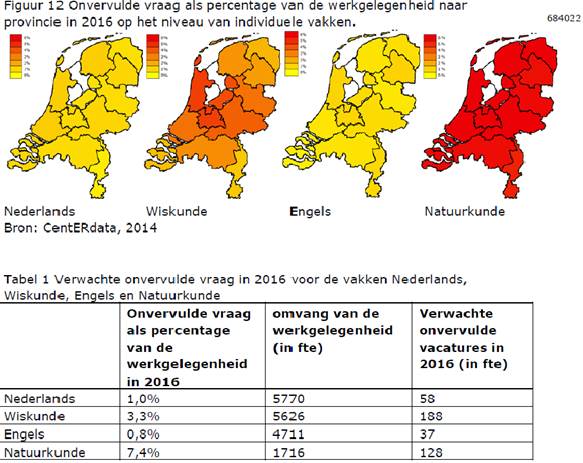Door de vergrijzing zal het onderwijzerstekort in de grote steden het snelst oplopen, schrijven de bewindslieden van OCW aan de Tweede Kamer. Landelijk groeit het van iets boven nul in 2015 naar 6500 voltijdsbanen in 2025. In het middelbaar beroepsonderwijs voorspelt het ministerie een tekort van 1900 banen in 2018.