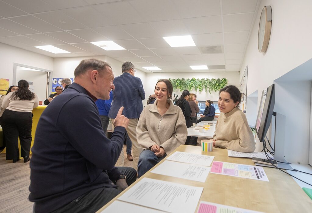 Verspreid over twee zalen zijn zo’n zestig mensen aanwezig. Ze lopen in en uit, blijven staan bij een poster of raken in gesprek met een student. Medewerkers van de gemeente worden gekoppeld aan studenten, die hun verhaal en project toelichten. Twintig weken hadden ze de tijd om aan hun projecten te werken.
