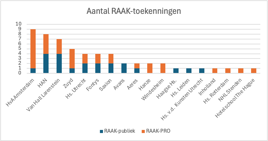 De hogescholen werken samen met ten minste twee publieke organisaties. De onderzoekspartners, waaronder de hogeschool zelf, verdubbelen de RAAK-subsidie uit eigen zak. De Hogeschool van Arnhem en Nijmegen (HAN) en het kleine Van Hall Larenstein sleepten bij deze RAAK-publiek-subsidie de meeste toekenningen in de wacht.
