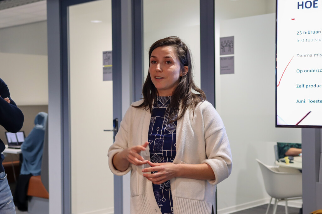 In juni 2023 startte ik een casestudy bij het Instituut voor Rechten van de Hogeschool Utrecht. Op de dames-, de rolstoel- en de all-gendertoiletten legde ik tampons en maandverband neer om te onderzoeken hoe men hierop zou reageren. Die betaalde ik overigens uit eigen zak en met donaties van collega’s. In de toiletten hing ik een enquête met simpele vragen: vonden ze dit een goed idee en wilden ze nog iets kwijt?