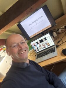 Voor sommige docenten is online lesgeven even wennen, maar voor Geert van Rooijen, docent bij het Instituut Archimedes, is het nog bekend terrein. Toch noemt hij het allesbehalve ideaal. ‘Ik weet hoe het werkt, maar praktisch is het niet. Zeker nu de sneeuw alweer begint te smelten, had les op locatie prima gekund.’